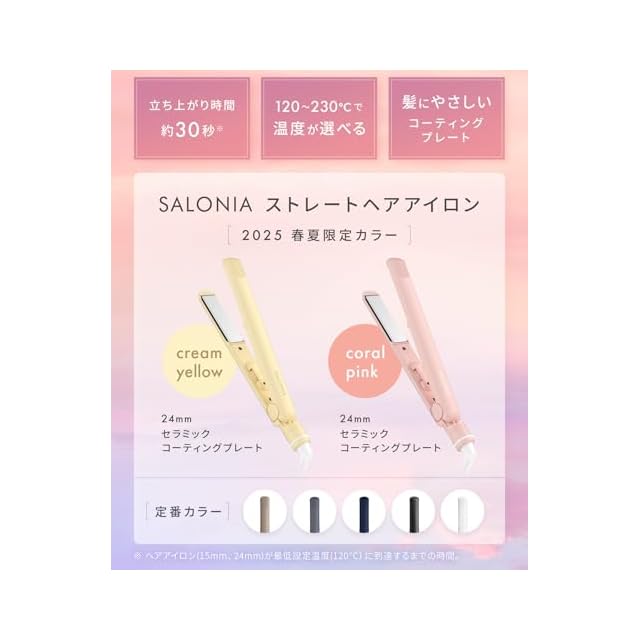 [2025年春夏限定] SALONIA サロニア ストレートアイロン ヘアアイロン 24mm 海外対応 SAL24004PM メロウコーラルピンク