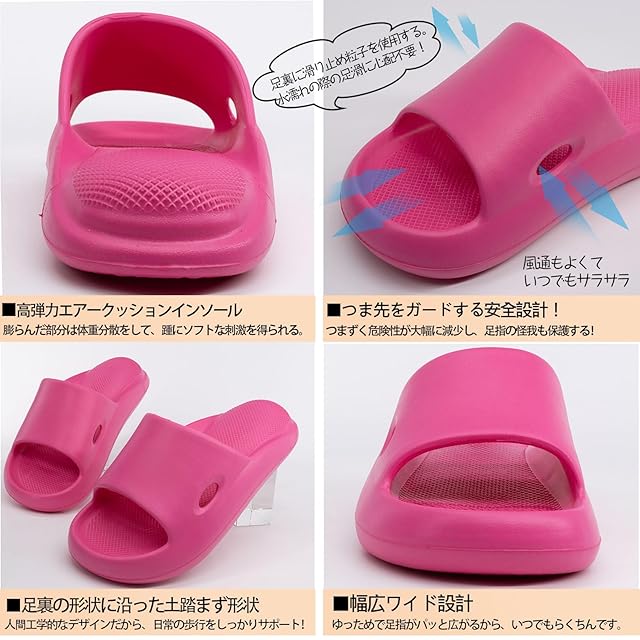 [Alvisto] 理学療法士推奨 スリッパ 室内 サンダル 4cm超厚底 エアースリッパ ルームシューズ レディース メンズ ベランダ バス トイレ 超軽量 静音防滑 柔らか 抗菌防臭 EVA air slippers ビビッドピンク 23.5-24.5cm