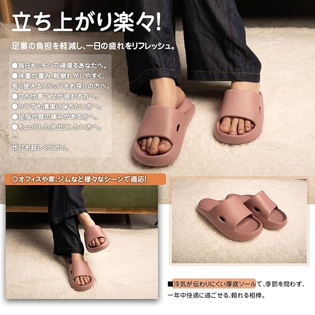 [Alvisto] 理学療法士推奨 スリッパ 室内 サンダル 4cm超厚底 エアースリッパ ルームシューズ レディース メンズ ベランダ バス トイレ 超軽量 静音防滑 柔らか 抗菌防臭 EVA air slippers オールドローズ 22.5-23.5cm