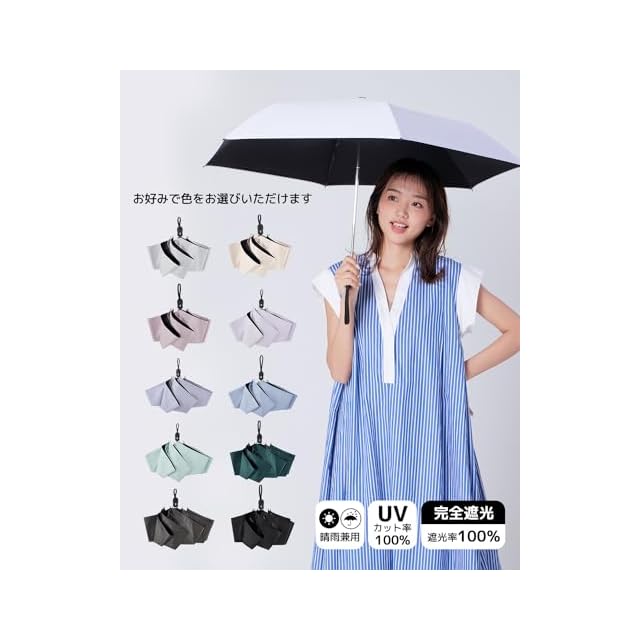 【UVカット*完全遮光】反射冷却素材を使用し、日傘を開いたら、傘下温度の上昇を大幅に抑え、最大-21.5℃、高密度の傘布と日焼け止めのブラックラバーコートを組み合わせた、優れた品質、優れたシェーディング効果、優れた断熱性。紫外線カット100%効果、UPF50+ 光透過率0、日差しの中で涼しく保ち、そしてあなたの肌を効果的に保護します。真夏の強い日差しを遮り、大切なお肌を太陽光線、紫外線からガードでき、日焼け対策アイテムとして猛暑を乗り切ります、UVカット率は100%以上。
