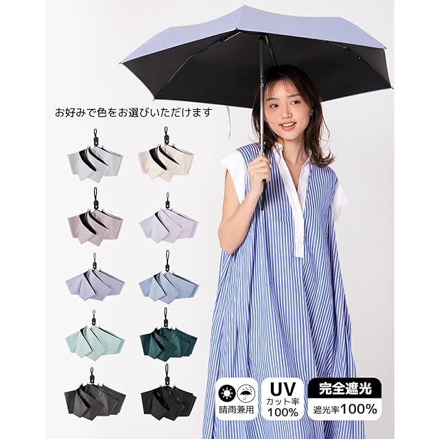 【UVカット*完全遮光】反射冷却素材を使用し、日傘を開いたら、傘下温度の上昇を大幅に抑え、最大-21.5℃、高密度の傘布と日焼け止めのブラックラバーコートを組み合わせた、優れた品質、優れたシェーディング効果、優れた断熱性。紫外線カット100%効果、UPF50+ 光透過率0、日差しの中で涼しく保ち、そしてあなたの肌を効果的に保護します。真夏の強い日差しを遮り、大切なお肌を太陽光線、紫外線からガードでき、日焼け対策アイテムとして猛暑を乗り切ります、UVカット率は100%以上。
