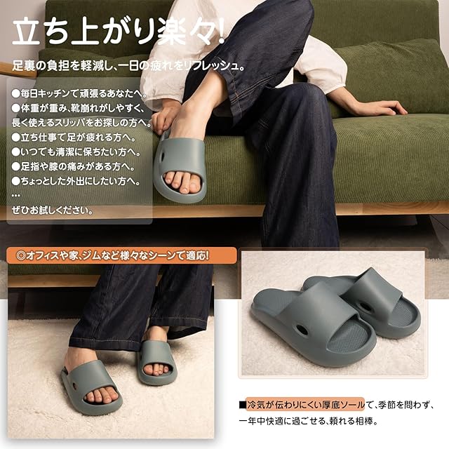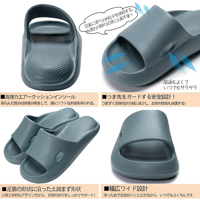 ●【抗菌防臭最新EVA素材/ 汚れに強い/丸洗い可】環境にやさしい最新EVA素材を一体成型で、何回洗濯してもこうきん機能が持続するAg+あんしんスリッパ!、解放な踵部分だから、水溜まらなく、余分な水を流しやすく、シャワー浴びてくるも問題ない。通年適用サンダルとして、室内に使用に限らず、屋外の街歩きなどにもサンダルとしての使用もメリット。