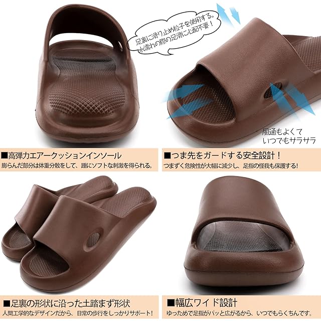 [Alvisto] 理学療法士推奨 スリッパ 室内 サンダル 4cm超厚底 エアースリッパ ルームシューズ レディース メンズ ベランダ バス トイレ 超軽量 静音防滑 柔らか 抗菌防臭 EVA air slippers コーヒー色 25.0-26.0cm
