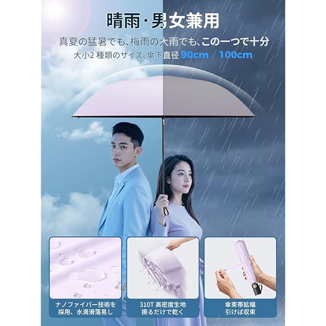 商品名:【JIS認証·現役皮膚科医監修】日傘 UVカット100遮光遮熱 折り畳み【業界初!改良型ワンタッチ自動開閉】UPEBおりたたみ傘 188g-230g超軽量 コンパクト 紫外線遮断 折りたたみ傘 耐風撥水 晴雨兼用 携帯便利 日傘メンズ/レディース/ガールズ/ガールズ/子供/大人兼用 収納ポーチ付き 母の日 父の日 お祝い 誕生日プレゼント2年品質 (薄紫, 100cm直径超大サイズ)