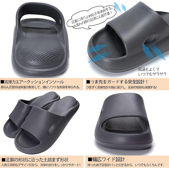 [Alvisto] 理学療法士推奨 スリッパ 室内 サンダル 4cm超厚底 エアースリッパ ルームシューズ レディース メンズ ベランダ バス トイレ 超軽量 静音防滑 柔らか 抗菌防臭 EVA air slippers ダークグレー 25.0-26.0cm