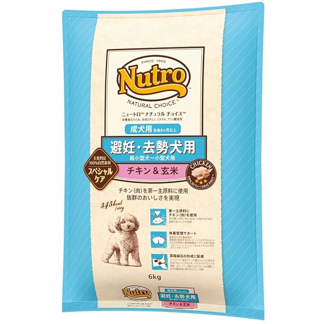 Nutro ナチュラルチョイス 超小型犬~小型犬用 避妊・去勢犬用 成犬用 生後8ヶ月以上 チキン&玄米 6kg ドライフード 極小粒 総合栄養食 ドッグフード 犬 大容量 自然素材 香料・着色料 無添加 ニュートロ