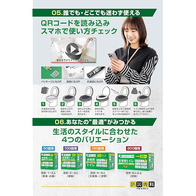 「被災者の声から生まれた」 非常用トイレ PREMIUM【使用回数最大・ゴミ量最小設計】15年保存 簡易トイレ 携帯トイレ 防災グッズ すぐ使える使い方動画QR付(200回)
