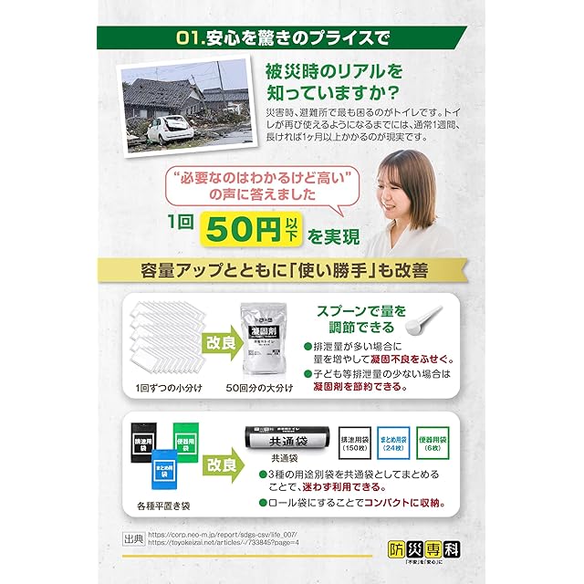✅【手頃な価格でしっかり備えられる】被災時にもっとも困るトイレ問題。「必要なのに高い」という声に応え、容量をアップするとともに、使いやすさも改善し、コストパフォーマンスを高めました。