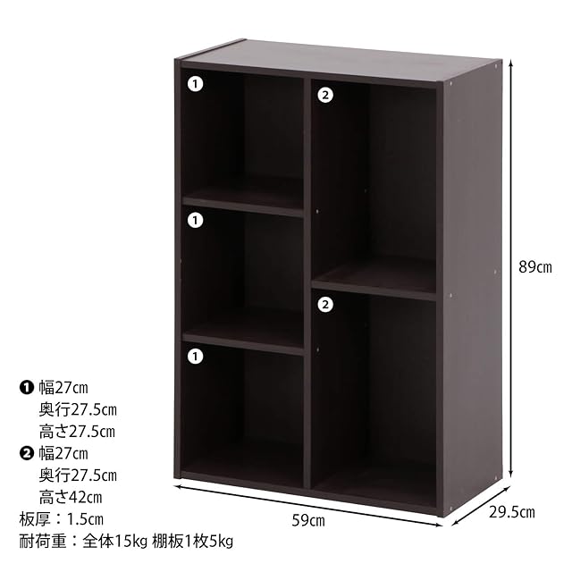 商品名:不二貿易 フリーボックス カラーボックス 2列 幅59×奥行29.5×高さ89cm ダークブラウン 大容量 組立商品 86008