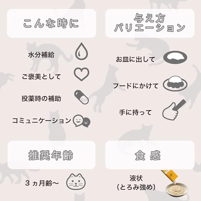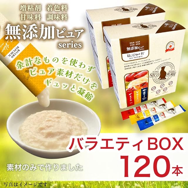 無添加ピュアシリーズ3種(鶏ささみ、まぐろ、海鮮ミックス)各20本ずつが1箱になったお得なパック<br> ペロペロなめても、フードにかけても。<br> 安心安全日本産ピューレタイプ。 <br>愛猫と家族の絆 コミュニケーショントリーツ。 <br><br>~こだわりバリューポイント~ <br>5つのNo<br> ●No増粘剤<br>●No着色料 <br> ●Noグルテン<br> ●No甘味料<br> ●No調味料<br> <br>添加物不使用。<br>余計なものを使わずピュア素材だけをギュッと凝縮。<br>3ヵ月未満の幼猫は消化器官が未発達のため、与えないでください。<br><br>〈原材料〉<br>【まぐろ】まぐろ、米粉 <br>【鶏ささみ】鶏ささみ、米粉<br>【海鮮ミックス】魚介類(まぐろ、かつお、サーモン、しらす)、米粉<br><br>〈成分〉<br>【まぐろ】たんぱく質:7.5%以上、脂質:0.1%以上、粗繊維:0.5%以下、灰分:1.0%以下、水分:90.5%以下、エネルギー(1本あたり)約8kcal<br>【鶏ささみ】たんぱく質:8.0%以上、脂質:0.1%以上、粗繊維:0.5%以下、灰分:1.0%以下、水分:88.0%以下、エネルギー(1本あたり)約7kcal<br>【海鮮ミックス】たんぱく質:6.0%以上、脂質:0.5%以上、粗繊維:0.5%以下、灰分:1.5%以下、水分:87.0%以下、エネルギー(1本あたり)約8kcal<br>〈内容量(1本あたり)〉<br>13g