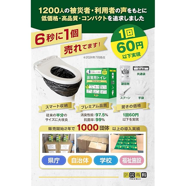 「被災者の声から生まれた」 非常用トイレ PREMIUM【使用回数最大・ゴミ量最小設計】15年保存 簡易トイレ 携帯トイレ 防災グッズ すぐ使える使い方動画QR付(50回)