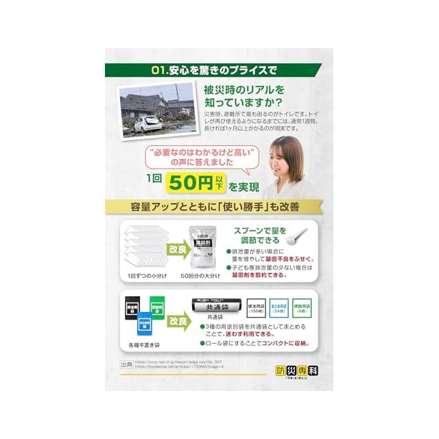 ✅【手頃な価格でしっかり備えられる】被災時にもっとも困るトイレ問題。「必要なのに高い」という声に応え、容量をアップするとともに、使いやすさも改善し、コストパフォーマンスを高めました。
