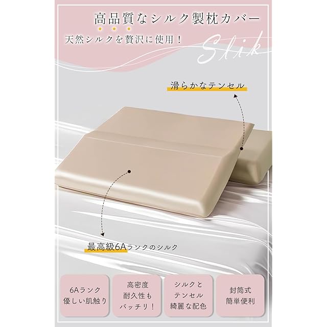 商品名:Utukky シルク枕カバー 90×68cm まくらカバー 片面シルク枕カバー 封筒式枕カバー シルクピローケース テンセル 洗える 寝癖軽減 抗菌防臭 美髪・美肌 敏感肌に優しい 四季適応 クリスマス 新年ギフト 贈り物 1枚セット シャンパン