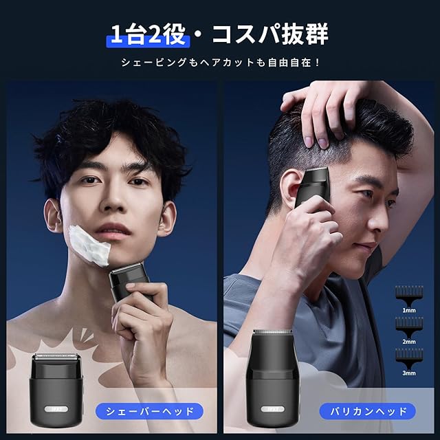 商品名:ひげそり 電動シェーバー 往復式 深剃り 電気シェーバー 知能ヒゲセンサー技術 Type-C急速充電 IPX7全身防水 乾湿両用【1台2役シェーバー/バリカン】バリカンヘット附属 低騒音 髭剃り 軽量 小型 持ち運び便利 旅行 出張 車内常備 父の日 プレゼント