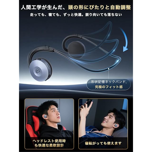 「スポーツ専用設計」-Earaku(イアラク) が独自開発のオープンイヤー型 イヤホン「SoundFold J135」は最先端の3Dフィットデザインで、柔軟シリコンネックバンドと2ヶ所の耳掛けポイントが、人体工学に基づく三点支持で、安定性が最大限のサポートを提供し、ウォーキングや筋トレ中でもズレない着け心地を実現しました。オープンイヤーデザインを採用したSoundFold J135は、周囲の音をしっかりと把握しながら、ワークアウトに集中することができます。さらに、耳をふさがないリスニングスタイルは特に耳の敏感な方や長時間使用するスポーツ愛好者に最適な【耳が疲れない】設計です。