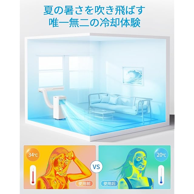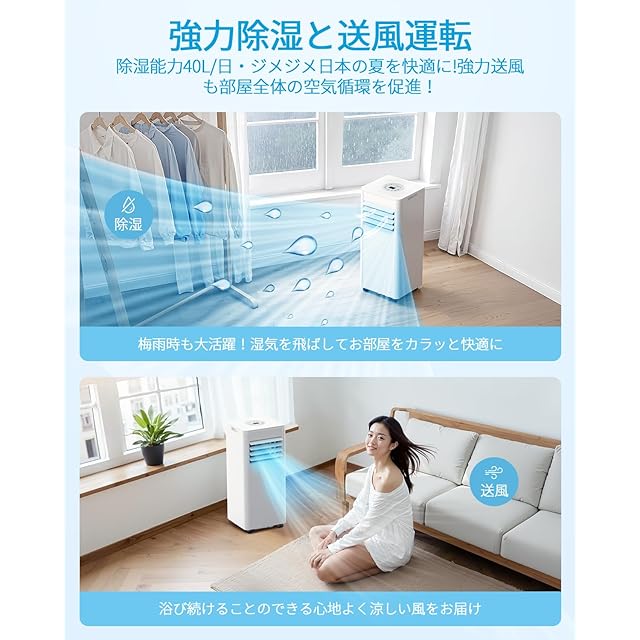 【梅雨も夏も、快適&スタイリッシュに】冷房・除湿・送風を自由に切り替え、あなたの暮らしをさらに快適に。✅毎年、湿気に悩まされる「梅雨」には、ぜひ除湿機能を活用してください! 最大40L/日の驚異的な除湿力で、ジメジメした空気も、部屋干しのストレスも一掃。除湿機顔負けのパワーで、快適で清潔な住環境を提供します。✅さらに、風を操る!Brehobo独自の革新テクノロジーを搭載。2段階の風力調整が可能で、ひとつは静かでやさしい風が快適な睡眠をサポートし、もうひとつはパワフルな強風で室内の換気や空気循環を効率的に行い、オールシーズン活躍します。