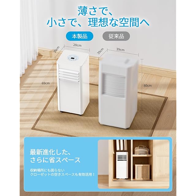 【"小さく、薄く、美しく" を追求した究極のデザイン!】住空間を圧迫する従来のポータブルクーラーに、もうウンザリしていませんか?Brehoboの開発チームは日本の住宅事情を徹底研究し、「極限まで薄く、小さく、かつ高性能なポータブルエアコン」を開発するプロジェクトを始動。試行錯誤を重ねること1年──ついに、業界最薄の奥行き280mm・幅300mmのコンパクトデザインが完成!前世代モデルより奥行きを10cmスリム化し、インテリアに馴染む洗練されたフォルムを実現しました。✅さらに、新開発の『蒸発エレメント』を搭載。従来のモデルを遥かに超える蒸発プレート面積を確保し、ドレン水を捨てる手間を省略。床が濡れる心配もなく、快適性が飛躍的に向上しました。コストは20%上昇したものの、利便性と快適さを最優先。これこそ、次世代のポータブルクーラーです。※特殊窓や窓パネルの寸法に関するご相談も、お気軽にお問い合わせください。