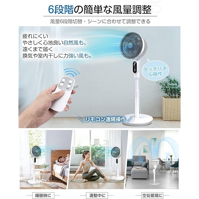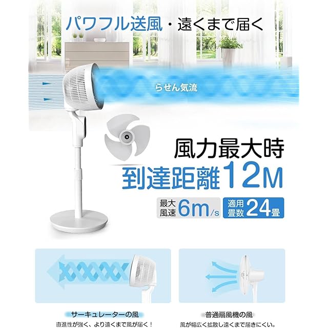 商品名:扇風機 サーキュレーター 兼用【2025モデル・首振り・節電対策】1台多役 リビング扇風機 省エネ 風量6段階 パワフル送風 大風量 60秒パネル自動消灯 リモコン付き 換気扇 タイマー付き 高さ調節可能 1.8M電源コード 24畳 お手入れ簡単 オールシーズン活躍 冷房/暖房 空気循環 換気 梅雨 衣類乾燥 せんぷうき PSE認証済み 日本語取扱説明書付き