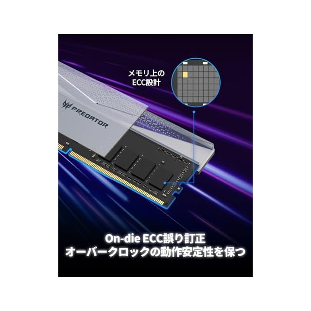 【オーバークロック対応】Intel XMP 3.0および AMD EXPO認定。XMPプロファイルによる簡単にオーバークロックできます。また、オンダイ ECC(ODECC)は限界を超えながら究極のパフォーマンスを持続し、データ完全性の維持に役立ちます。