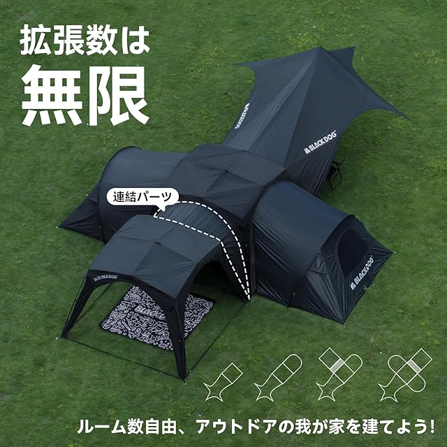 【公式】BLACKDOG テントタープ 天宙 3×3×2.2m 自立型 4-6人用 無限拡張可能 アウトドアキャンプ 設営簡単 uvカット 収納バッグ付き 大型 (拡張タープ)
