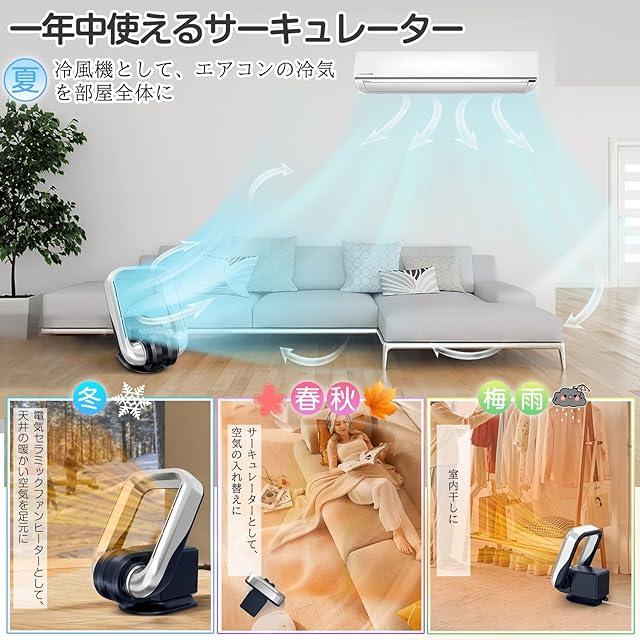 商品名:扇風機 静音 【2025年新型冷暖兼用・壁掛け・羽根なし】 サーキュレーター 5段階送風&3段階温風切替 扇風機 壁掛け 首振り/上下180°調節 9Hタイマー機能 DCモーター 広範囲送風 強力 リモコン付 省エネ 節電対策 省スペース 組み立て不要 転倒安全装置 即暖 子供部屋/リビング/寝室/書斎/キッチン/脱衣所/洗面所/トイレ/オフィス用 日本語説明書 PSE認証済み