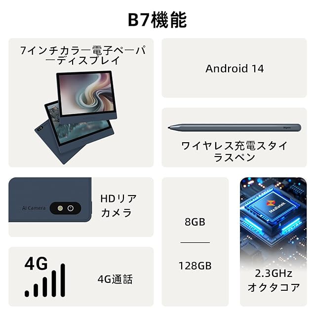 商品名:Bigme B7 カラー電子ペーパータブレット 7インチ 8+128GB 4G通話対応