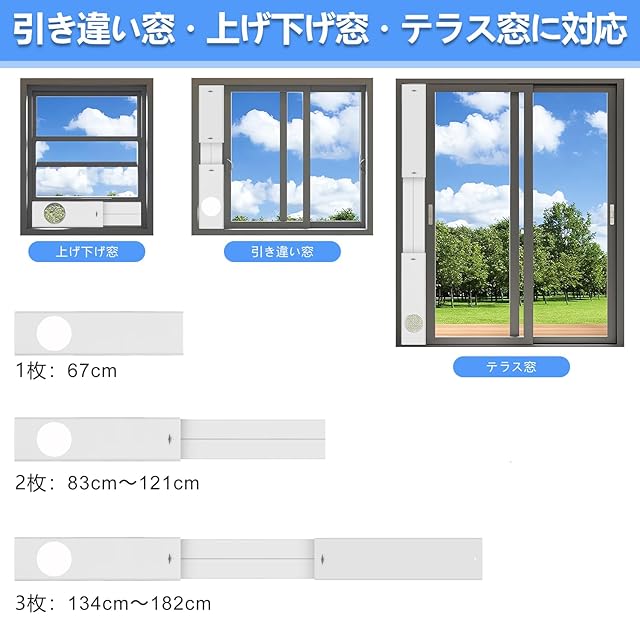 窓用ダクトパネル 3枚セット テラス窓用 窓枠高さ67から182cmまで使用可 雨よけ付き 二重径対応 密封性向上 スポットクーラー 排気 移動式クーラー ポータブルエアコン対応