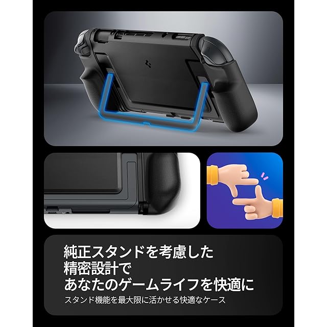 Spigen Switch2対応ケース グリップ感 ドック対応 高級感 保護カバー スイッチ2ケース デュアル・グリップ(ブラック)