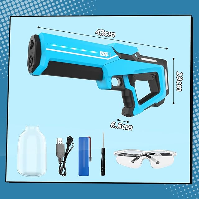 商品名:電動水鉄砲 Cute Stone ウォータービーズガン 水遊び おもちゃ 水鉄砲 強力 高速連射 15秒自動吸水 LEDライト 保護メガネ ボルト付属 8-10m超強力飛距離 全身防水 大容量バッテリー 水合戦 子供 大人 夏休み ビーチ キャンプ 暑さ対策 海水浴 プレゼント 男の子 女の子(青)
