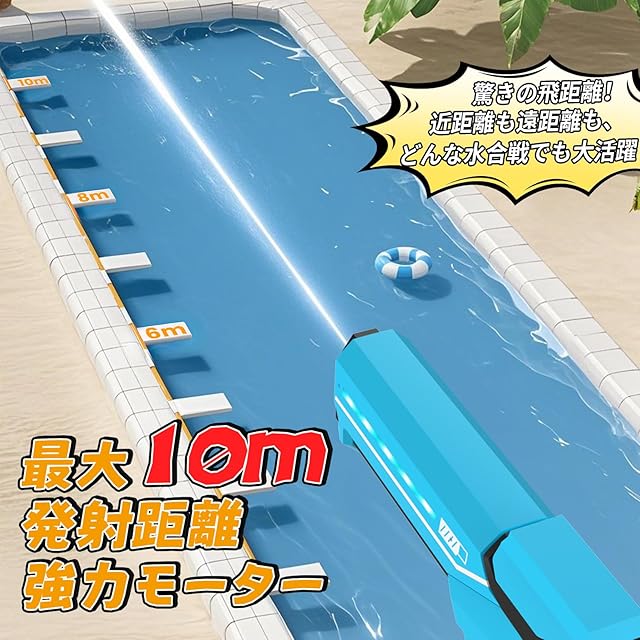 【8-10m超強力飛距離&保護メガネ付】強力なパワーで、遠距離射撃は8-10m可能です。近距離戦でも長距離戦でも、水合戦で大活躍です!セットには保護メガネも入っています。水遊びの時、相手の水で目を傷めるのを防ぐことができます。