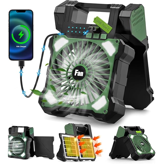【ソーラー充電とUSB充電】GATHERATERで生産した2025年最新のソーラー扇風機は大きな強化した2枚のソーラーパネルを搭載し、5.4Wのソーラーパネルを利用して太陽光で充電できるからアウトドアの電源がない場所でも涼しい風を続けて楽しめるソーラーファンです。キャンプ 扇風機は5200mAhのバッテリーを内蔵しています。ソーラーパネルを利用して太陽光で充電できるからアウトドアの電源がない場所でも涼しい風を続けて楽しめるソーラーファンです。自宅ではUSB充電が可能です。(充電は5V2A出力のアダプターを使用してください)。