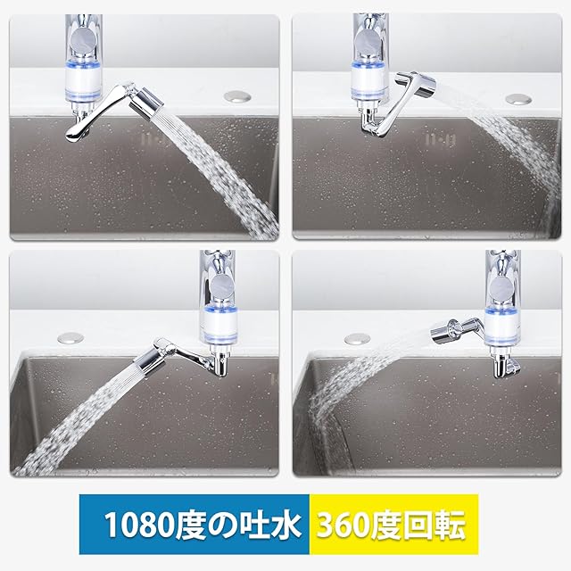 【1080度自由回転】1080度回転可能な設計で、ヘッドの向きが変えて水流の方向が自由に変換できる、延長パイプもあり出水の高度位置も調整できます。様々な方向に水が出せるのが便利で、隅々までシンク内をシャワーできます