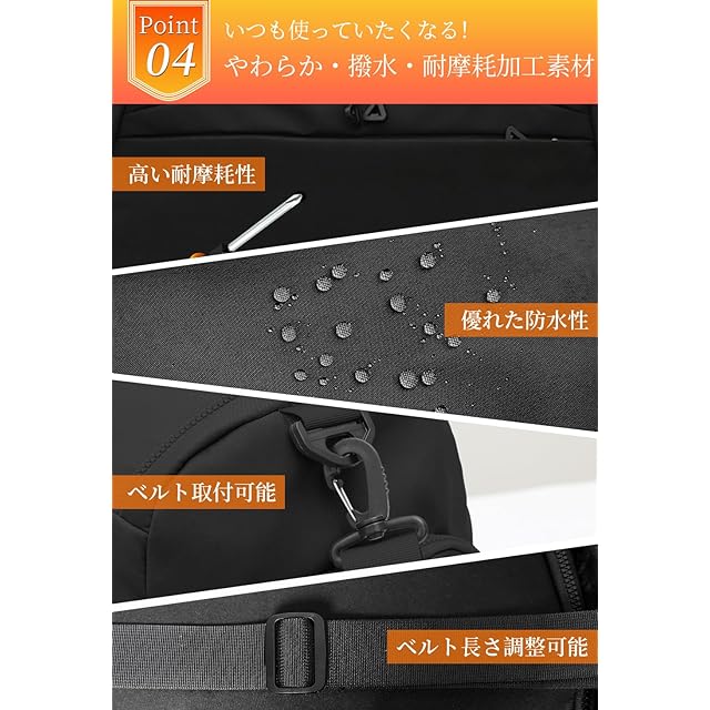 【2025新アップ&35L多機能バッグ】メイン収納部は最大35L!!6つの多機能ポケットが旅の荷物をスマートに整理。タブレットやA4サイズのノートはもちろん、大型15.6インチのノートパソコンでも楽々収納します。ファスナーポケットとオープンポケットを設置。ファスナーポケットは乾湿分離仕様で浸水しない為、濡れたタオルや洗面用品を入れるのにも最適です。小物類も細かく収納でき、使い勝手が良いです。またバッグの側面には透気孔付きシューズ収納があり、靴の持ち運びや荷物の種類を分けたい時にも活躍します。