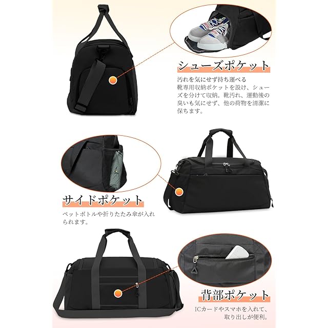 商品名:スポーツバッグ ボストンバッグ 【35L大容量&4WAY】旅行バッグ シューズ収納 ジムバック 大容量 キャリーオンバッグ 防水 超軽量 乾湿分離 機内持込 キャリーオンバッグ 水泳バッグ ダッフルバッグ トラベルバッグ アウトドア 修学旅行 ユニセックス