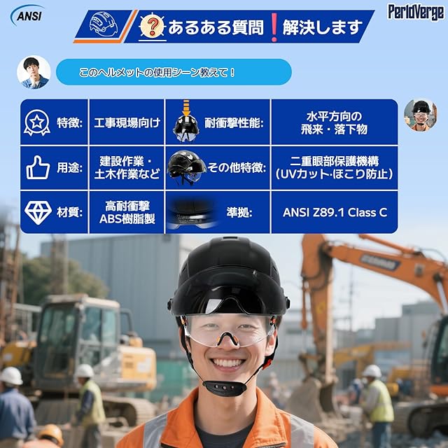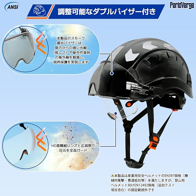 商品名:PerldVerge 建設用ヘルメット 安全ヘルメット 職業用ヘルメット 軽量 クリアバイザー付き 耐久性 作業用ヘルメット EN397規格準拠