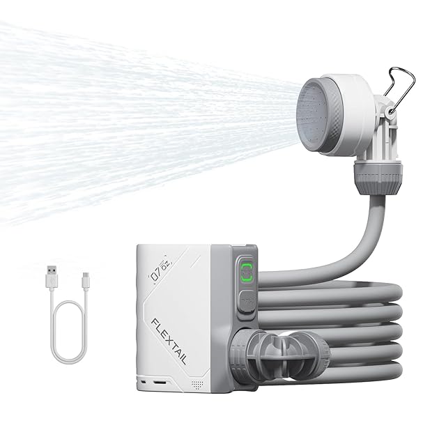 FLEXTAILGEAR TINY SHOWER ポータブルシャワー シンプルシャワー 電動シャワー ポータブルシャワー キャンプ用シャワー シャワーポンプ 2500mAh充電式バッテリー TYPE-C急速充電 2段階水流モード 軽量コンパクト 家庭用 ビーチサーフィン 旅行 屋内屋外 植物の水やり 屋外シャワー