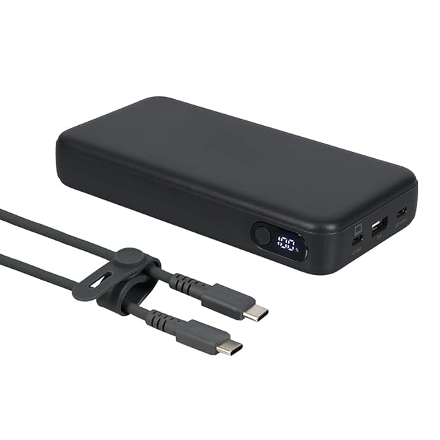 充実の付属品:専用ポーチとUSB-C - USB-C(PD240W対応)のシリコンケーブルが付いています。 ポーチはモバイルバッテリー本体とケーブルを一緒に整理して収納できるため、持ち運びやすく、出先で必要な時に素早く取り出して使用することができます。 ケーブルの長さは約50cmあるため、デバイスとの接続も十分に自由度があり、ケーブルが短すぎて使いにくいということもありません。