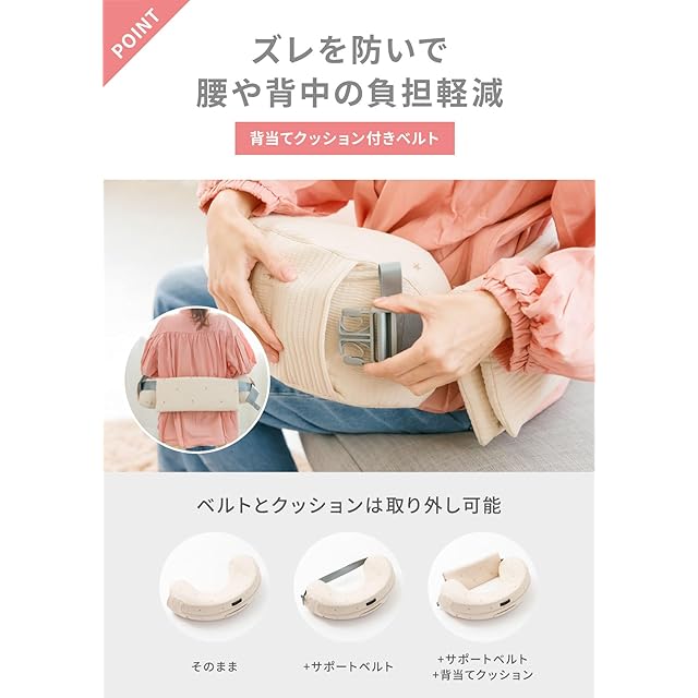 ✅【3WAYで使える】自分好みにカスタマイズできる仕様で、ベルトとクッションは取り外し可能。使い方に合わせて、シンプルなそのままのスタイルで使用したり、「+サポートベルト」を追加して安定性を高めたり、さらに「+サポートベルト+背当てクッション」を組み合わせて快適性を追求したりできます。