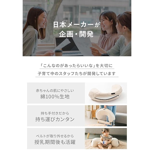 ✅【色んなこだわり】持ち手付きで持ち運びが簡単。授乳期間が終わった後でも、お座りクッションとして活用できる便利なデザインです。