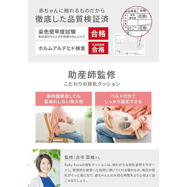 ■授乳しやすいカーブ設計 ■しっかり支える固さと高さ ■ズレを防ぐサポートベルト付き ■背当てクッションで腰や背中の負担を軽減 ■綿100%イブル生地 ■いつでも清潔!洗えるカバー