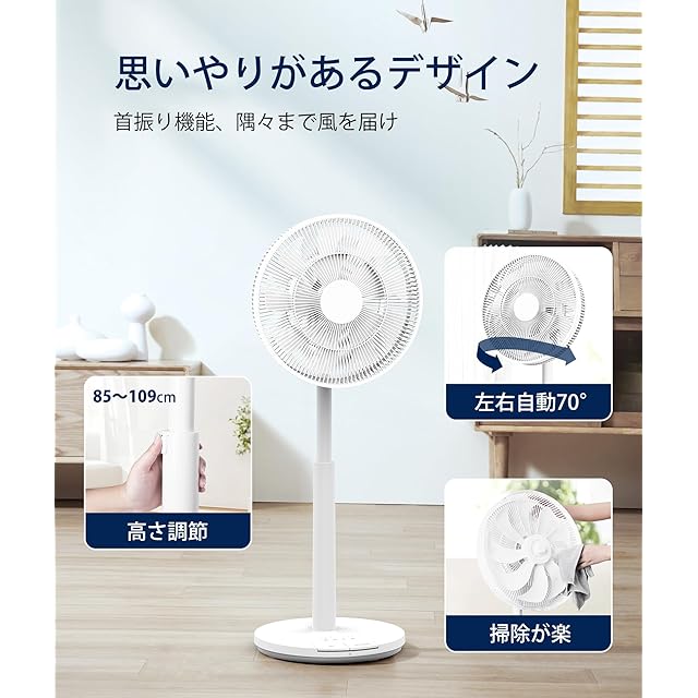 【便利な高さ調整】Joy Pebble扇風機は85~109cmまで12段階に調整できます。取り外せる電源アダプターを備えており、収納時にコンパクトに保管できるので便利です。そのほか、分解しやすい構造で、お手入れが簡単です。清潔で快適な風をお届けします。