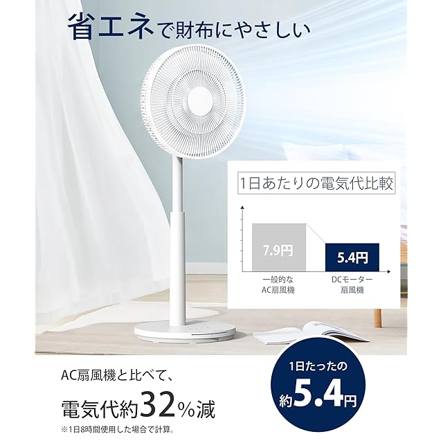 【静音デザイン&省エネ】Joy Pebbleリビング扇風機は静音設計で稼働中の騒音を最小限に抑え、最小32dBの静音運転で快適な睡眠環境を提供します。ACモーター扇風機やエアコンが1日にかかる電気代が数十円から数百円に対し、DCモーター搭載のJoy Pebble扇風機は一日の電気料がたったの5.4円です。財布にやさしい同時に、省エネルギーで環境にも優しいです。
