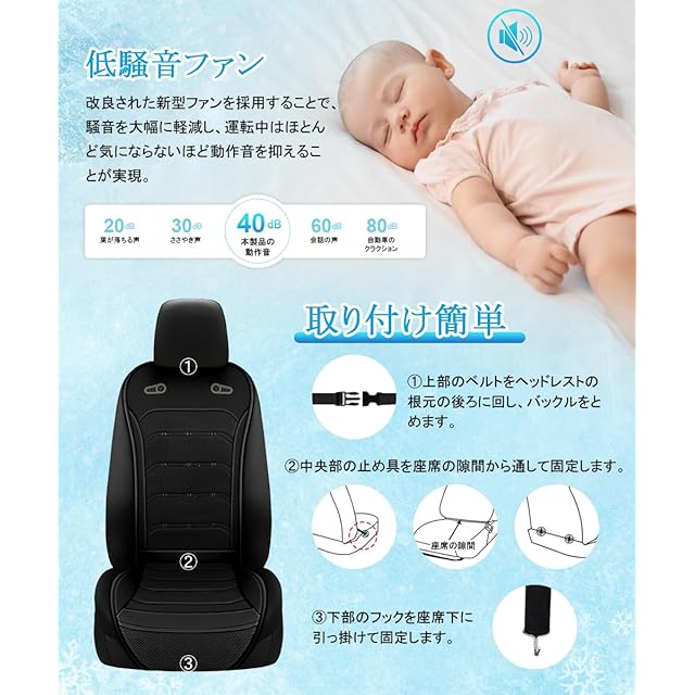 【無段階風量調整タイプ】このクールシートは、無段階風量調整が可能な最新型になります。従来の「弱・中・強」風量の制限はなく、好みの風量を微調整できます。風量が弱すぎる、もしくは強すぎるというストレスを解消でき、自分に合うの最適な風量の加減を見つけることができます。夏の運転の疲れを、清涼な風で癒しましょう。