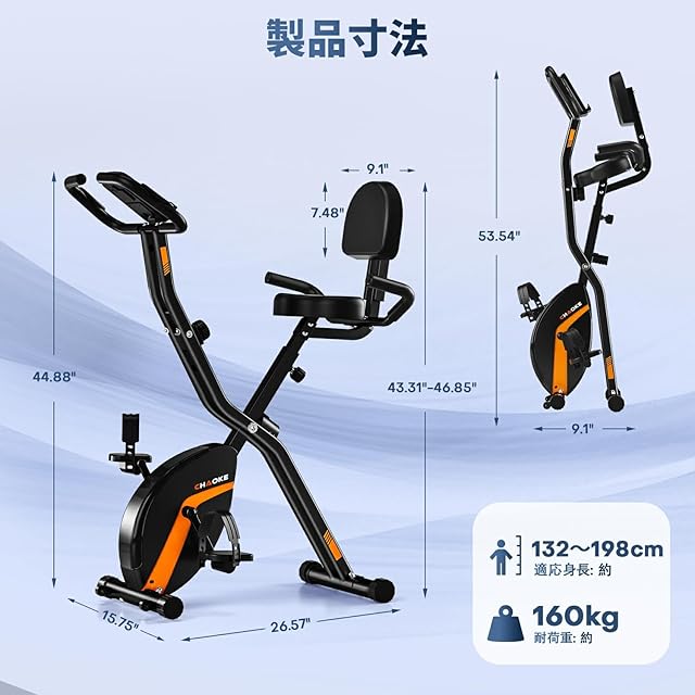 商品名:CHAOKEフィットネスバイク トレーニングバイク 【アップグレード版&5年】 静音 折りたたみ 16段階負荷 LCDディスプレイ&心拍数メーター付き& 大型サドル コンパクト収納 軽量 タブレットトレー付 小物ホルダー 組立簡単 承重160kg