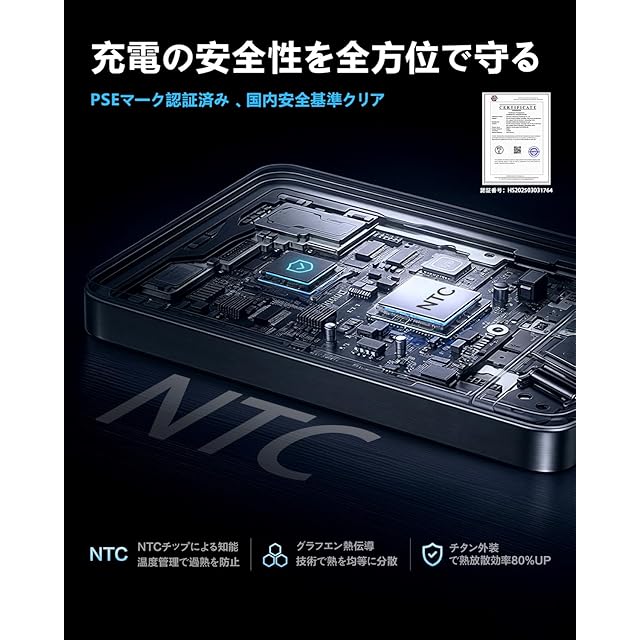 【FCC/PSE/UL認証済み・充電安全が万全】日本国内安全基準クリアPSEマーク認証済み。認証番号:HS202503031764。NTCチップによる知能温度管理で、過熱を防止できます。グラフェン熱伝導技術で、熱を均等に分散します。チタン外装により、熱放散効率が80%向上します。また、自動シャットオフ機能も搭載されており、安心してご使用いただけます。パススルー充電に対応します。そのモードでは5W出力で安定した充電を維持し、過電力を防ぎます。寝ている間も使用できます。FCC Report No:2BCJZMAGS-2/UL Report No:S03A24070875U00201