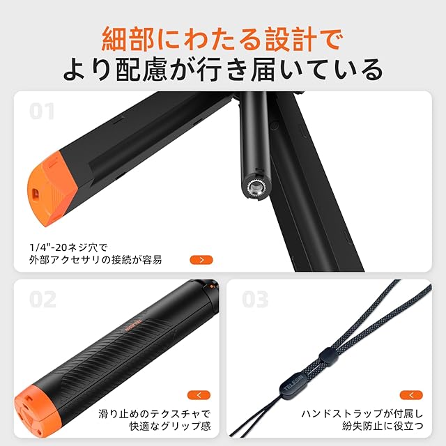 商品名:【TELESIN公式】 4-in-1多機能防水浮力ミニ三脚 GoProアクセサリー フローティンググリップ ダイビング撮影用 深水防護 三段伸縮調整可能 陸海両用自撮り棒 1/4インチネジ穴 多機能対応 軽量 滑り防止 手绳付き 紛失防止 浮上設計 塩雾試験合格品 Hero 13-5 BLACK MAX MINI/insta/AKASO/DJI Osmo 3 4 5 PRO/アクションカメラ用