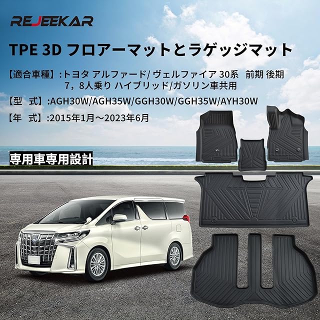 商品名:REJEEKAR トヨタ アルファード/ヴェルファイア 30系 フロアマットラゲッジマット 防水 7,8人乗り ハイブリッド/ガソリン専用車専用 TPE素材使用 3Dフロアマット 滑り防止 防水 耐摩耗 お手入れ簡単 Alphard VELLFIRE 30系フロアマット 5点セット