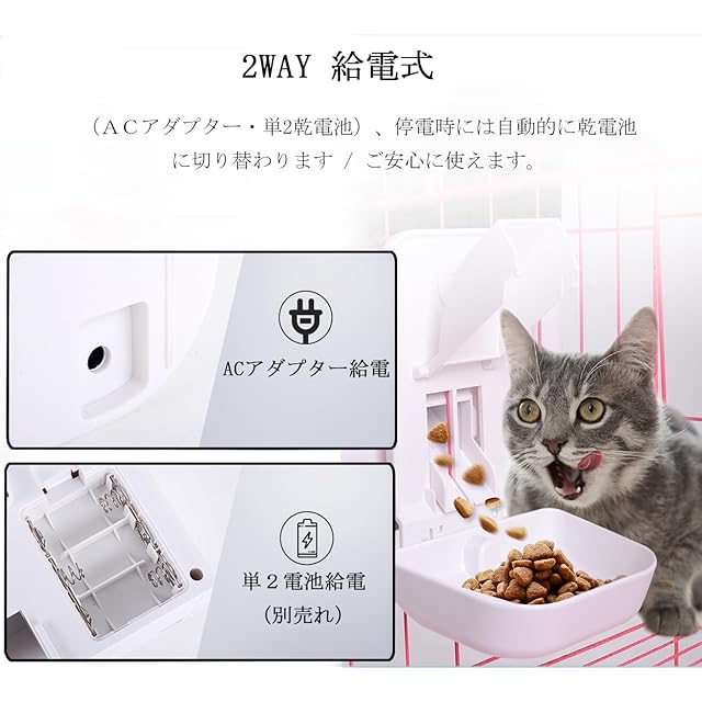 商品名:自動給餌器 ケージ掛け式 ペットフィーダー 小型犬 猫 ウサギ 2.3L容量 自動餌やり WIFIが必要 スマホで遠隔操作 定時定量 2WAY給電