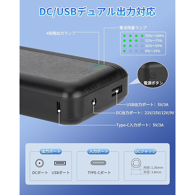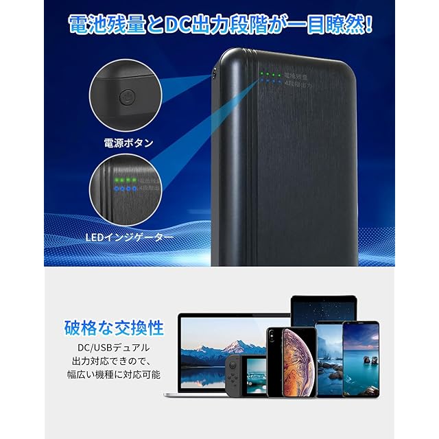 【穴直径9cm対応!2WAY出力!幅広い交換性を実現!】 ファン取り付け部の直径は9cmで、穴直径9cmの空調作業服、空調ウェア、ファン付きベスト、空調パンツなどに完璧に対応しています。✅空調ウェア バッテリーはUSB/DC出力対応しており、空調作業服やファン付きベストファンに限らず、USB入力に対応の携帯やタブレットなどにも適用ています。熱中症対策としてのファンバッテリーセットは現場仕事、配達作業、倉庫内作業、ゴルフ、登山など様々なシーンで大活躍します!