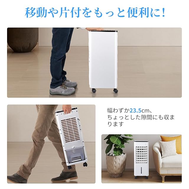 「コンパクトでで移動も楽々なスポットクーラー」当製品は自然蒸発技術を採用した冷風扇で、室内を素早く涼しく保つのはもちろん、エアコンとの併用で冷房効果をさらに高めます。熱中症対策にも最適な上、コンパクトサイズ(幅27×奥行24×高さ54cm、重量約3kg)でキャスター&取っ手付き。お部屋の移動や掃除時もスムーズに移動でき、快適な夏空間を手軽に作り出せます。